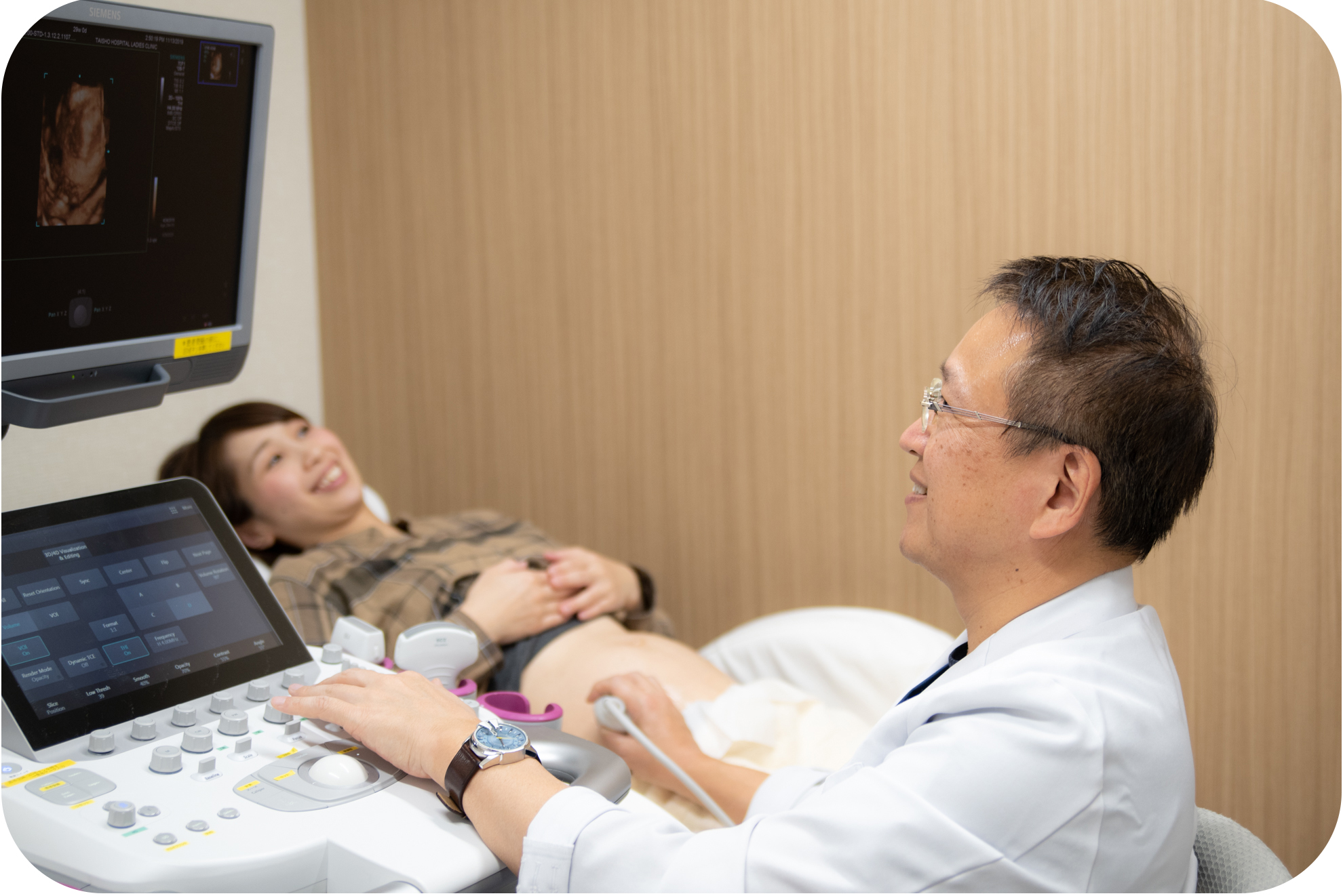 医師の問診後、超音波を使って胎児の状態を観察します。