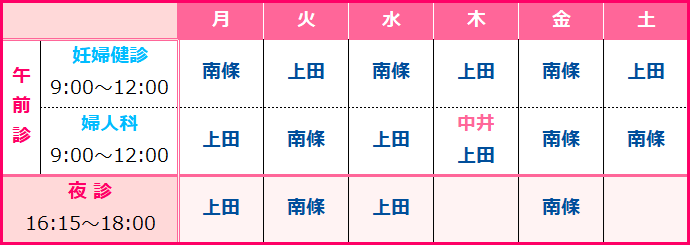 ・木曜日第1、3、5中井医師 第2、4上田医師が担当致します。
